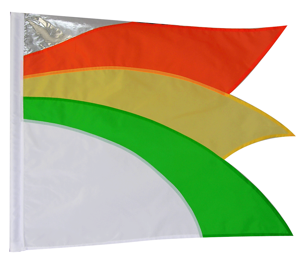 キッズフラッグ(幼稚園保育園鼓笛バンド)のご紹介です。ホームページ記載デザイン以外でも数種類のフラッグ生地を組み合わせて自由なデザイン、サイズ、カラーでオリジナルデザインフラッグも製作できます。納期はデザイン決定後約3週間かかります。(納期がお急ぎの場合はご相談下さい。)