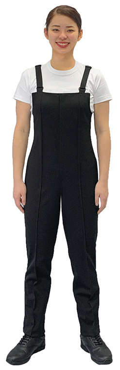胸丈まであるサロペット型マーチングパンツです。基本男女兼用で着用できます。ウインバードマーチングユニフォームのパンツはこちらのタイプで製作をすることが多いです。ハイラインパンツは吊りパンツです。ショート丈のジャケットを着用した際もウエスト部分からインナーが見えることも無く、パンツが下がってこないのでプロポーションが良く見えて統一感が生まれます。トラディショナルなショート丈ジャケットから、ストレッチタイプトップスなども問題無く着用が出来る万能パンツです。裾幅も太すぎずスタイリッシュなシルエットになっており、ニット素材で伸縮性があるので快適に演奏演技をすることができます。黒1色ライン無しの主要サイズは在庫品としてオンラインショップからもご注文頂けます。その他ご要望に応じて色違い、ライン付きなど製作可能です。